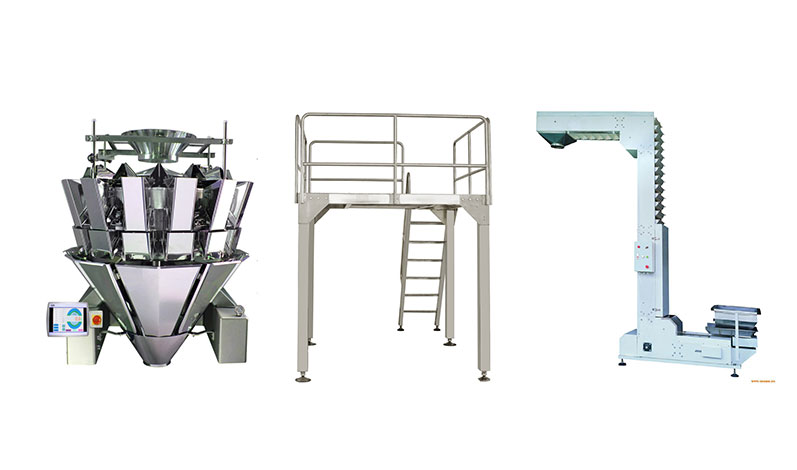 2.適用范圍:大米、五谷雜糧、紅棗、花生、桂圓、葡萄干、堅果等物料的包裝。這套設備是由給袋式包裝機+提升機+工作平臺+多頭組合秤組合而成。