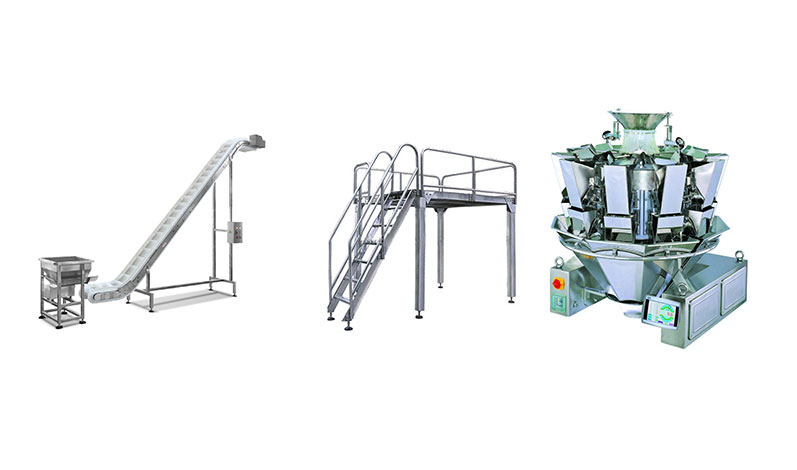 2.適用范圍:毛豆、芹菜、胡蘿卜、西藍(lán)花、等凈菜的包裝。這套設(shè)備是由給袋式包裝機(jī)+工作平臺(tái)+多頭組合秤+提升機(jī)組合而成。